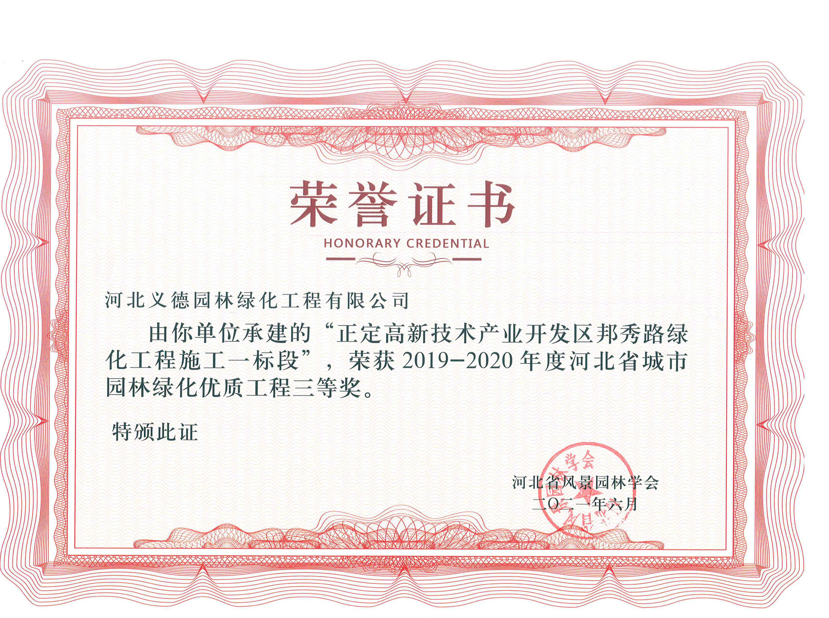 工程業(yè)績榮獲有2017-2018年度河北省城市園林綠化優(yōu)質(zhì)工程二等獎兩個;2019-2020年度河北省城市園林綠化優(yōu)質(zhì)工程二等獎兩個、三等獎兩個;2018至2020年保定市燕趙杯優(yōu)質(zhì)工程五個;2020年度石家莊市優(yōu)質(zhì)工程一個。